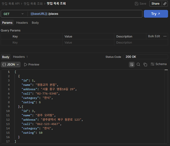 2. 맛집 [전체 조회] API를 아래와 같이 추가하기