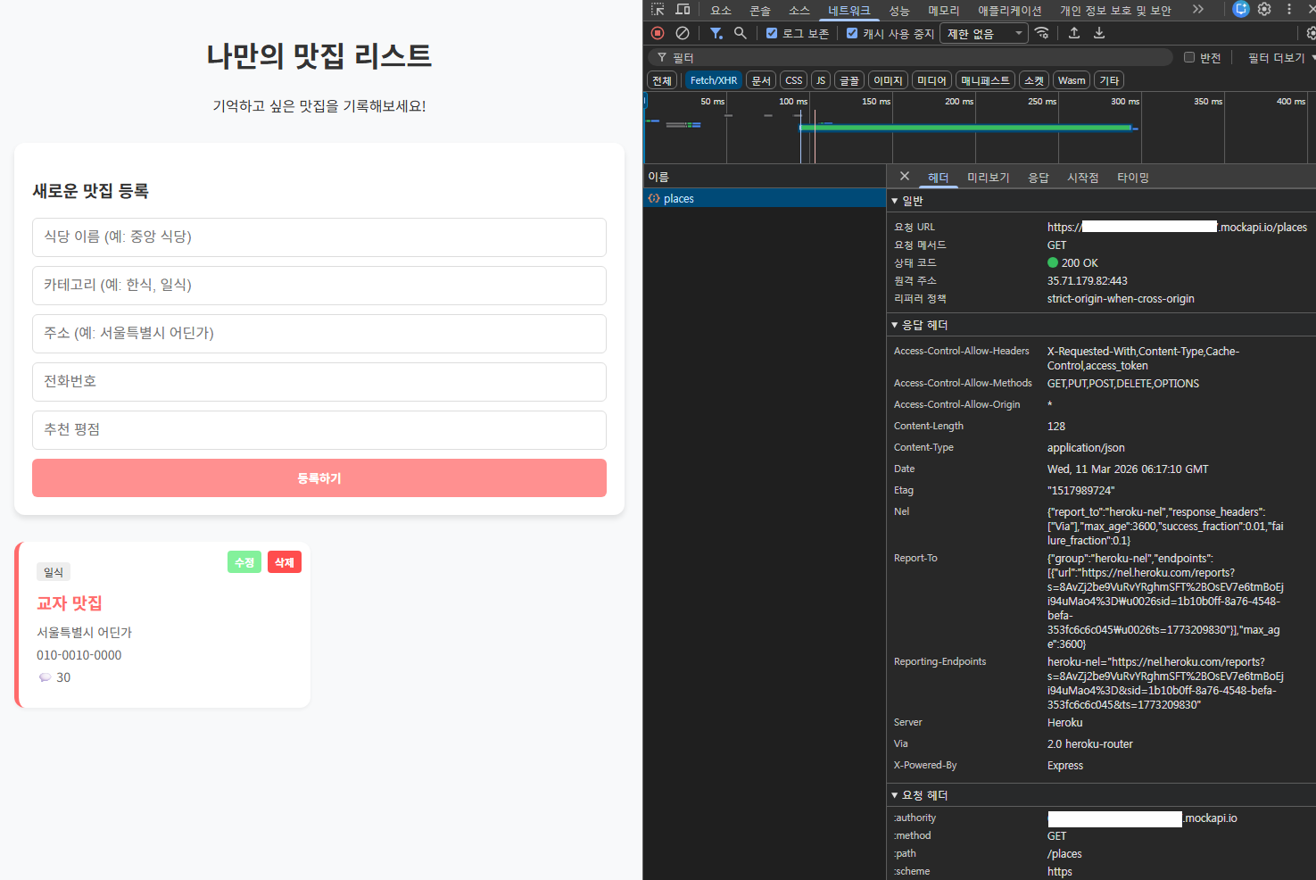 mockapi.io 에서도 places에 저장된 데이터가 하나 줄어든걸 확인하였습니다.